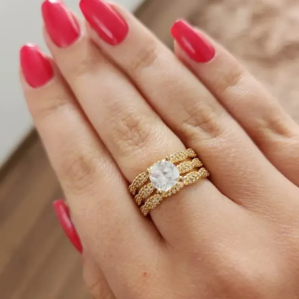 ANEL DOURADO TRÊS FIOS SOLITÁRIO CRAVEJADOConfira opiniões e avaliações de clientes!