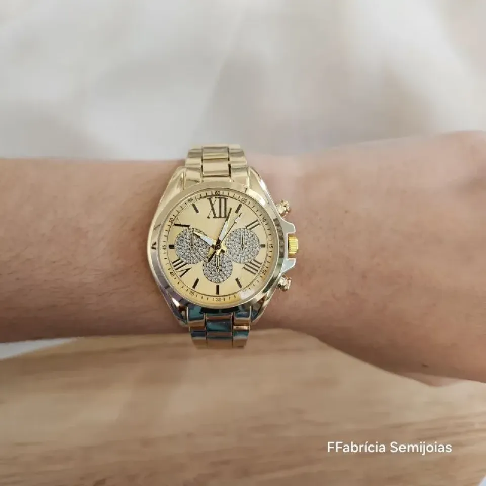 RELÓGIO DOURADO COM PEDRAS DENTROConfira opiniões e avaliações de clientes!